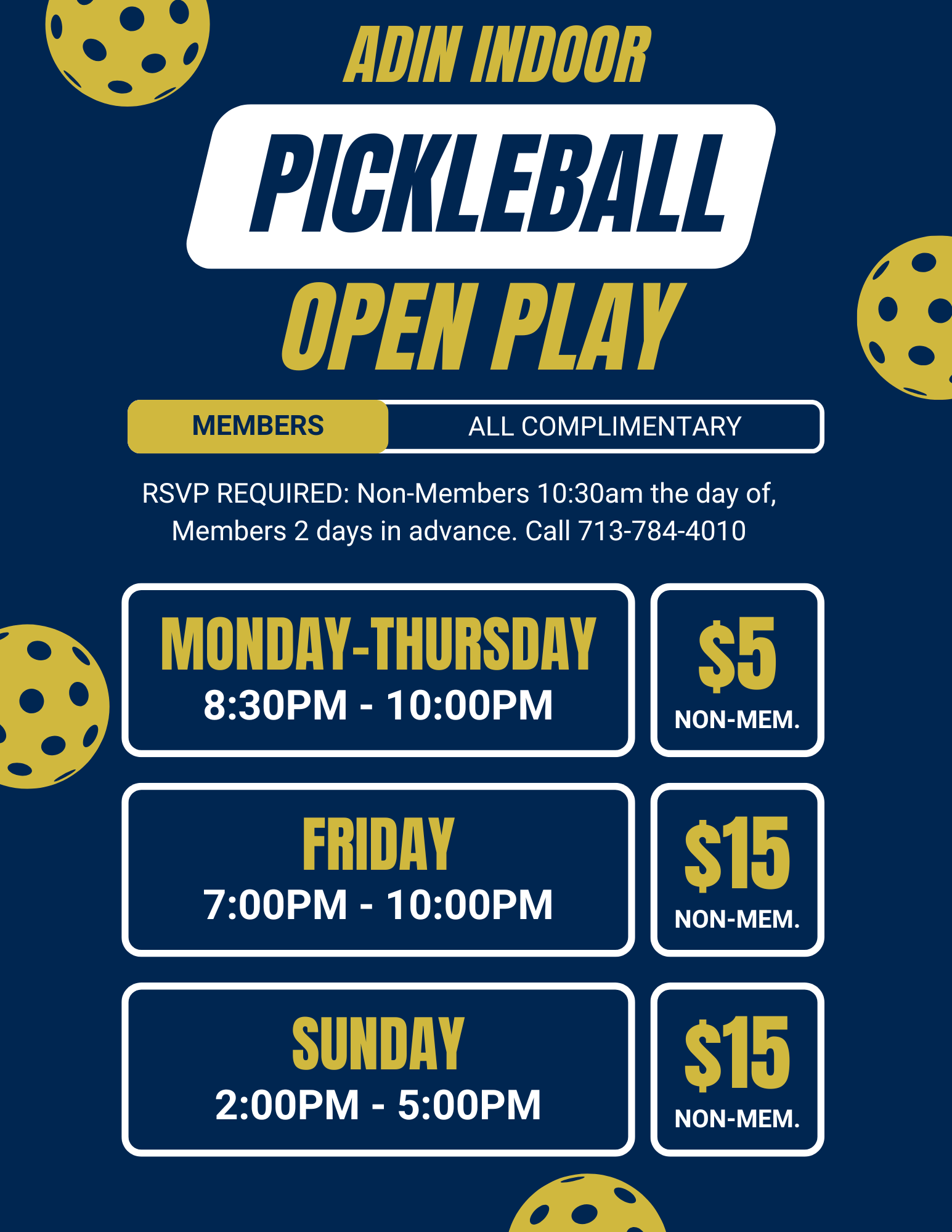 Our Open Plays are a great way for players to meet others and challenge themselves! Players will be mixed into groups of four and play games to 11, win by 2. During our 3-hour Open Plays, we’ll be dividing the courts by skill level. There will be at least one DUPR rated court every Open Play. This allows players to play more competitive fair games. Our goal with Open Play is to build a community, and create a competitive but fun environment.